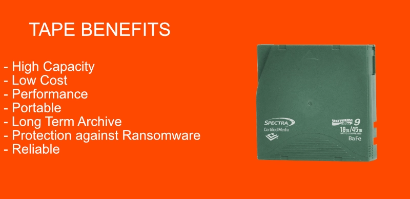 Tape is an excellent choice for data storage; it offers several advantages. First and foremost, tapes are highly reliable; they are less likely to fail than other forms of data storage. Additionally, tapes provide security and are tamper-proof. Furthermore, they offer cost-efficiency and are great for archiving, long-term storage purposes and keeping confidential information safe and secure.